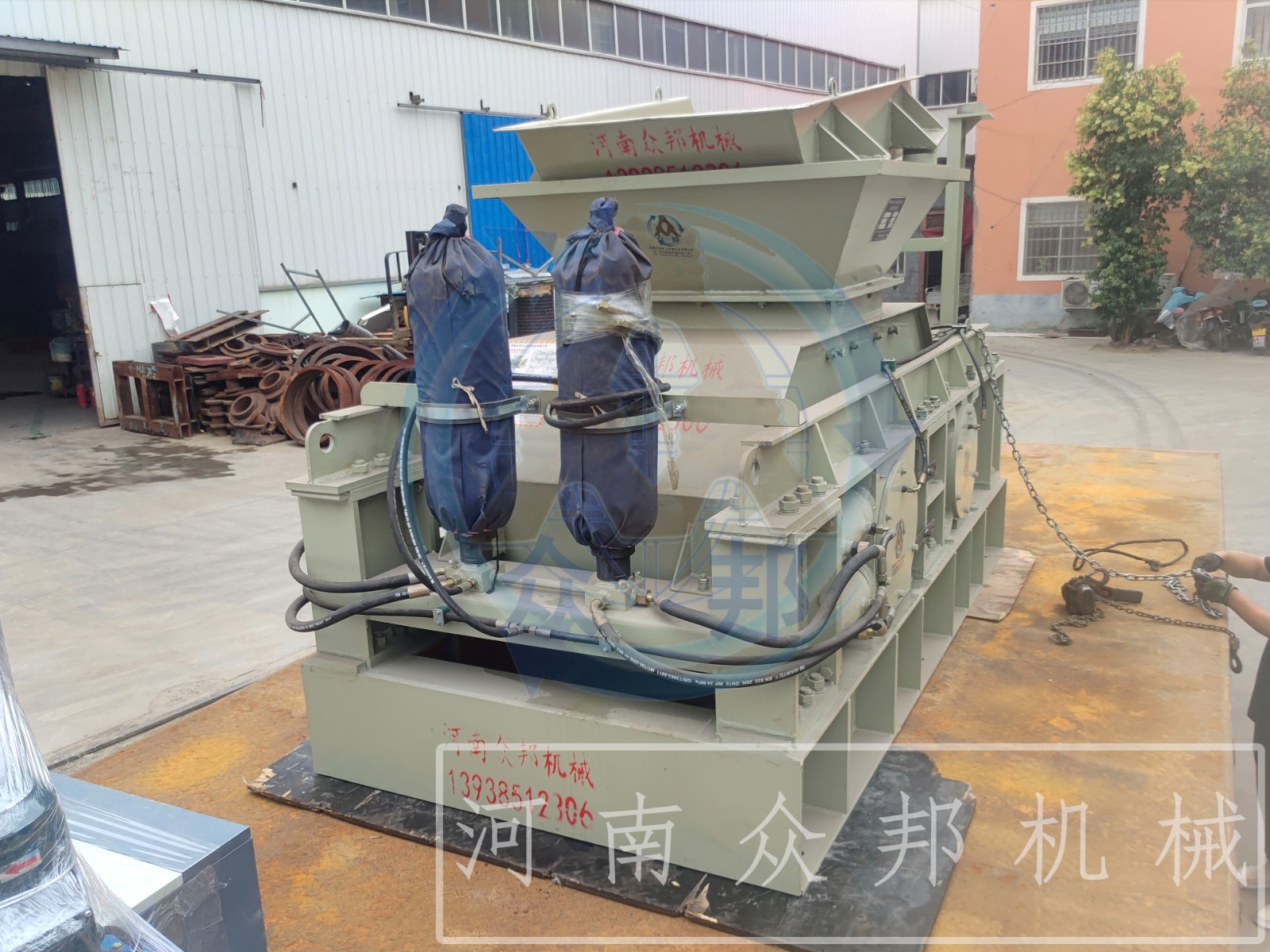 河南眾邦礦山機械設備有限公司(原河南省礦山機械設備有限公司)是專業從事研磨設備、破碎設備、粉碎機械、人工制砂設備、各種配套礦山設備以及各種民用設備的開發和生產的單位,公司主打產品:樹枝粉碎機,園林綠化樹枝粉碎機,城市綠化樹枝粉碎機,手推式樹枝粉碎機,鏈板進料木材破碎機,大型木頭樹枝粉碎機,環錘式破碎機, 顎式破碎機,液壓對輥破碎機,液壓雙輥制砂機,對輥制砂機,反擊破碎機,齒輥式破碎機,木材粉碎機,木料粉碎機,鋸末粉碎機,木屑粉碎機,礦石破碎機,木材切片機,木頭削片機,木材破碎機,鋸末烘干機,雙輥式破碎機等。自公司成立以來,注重自身形象建設,堅持以“誠信為本,品質至上”的經營理念,深受廣大國內外客戶的好評。公司擁有一支經驗豐富、技術精湛的售后服務團隊,客戶購機前,公司免費派工程技術人員到現場為用戶規劃場地,設計最佳流程和方案;購機后,公司將免費指派專業的售后服務人員到達現場指導客戶安裝調試和規劃管理設備。眾邦機械始終以;真誠的信譽,先進的技術,可靠的質量,滿意的服務來滿足廣大客戶對我們公司產品的需求。